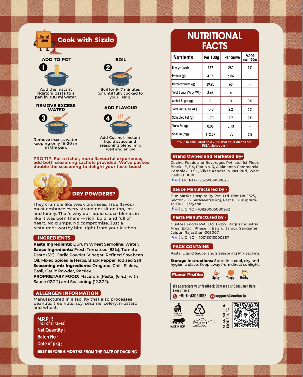 Prepared using a real liquid sauce instead of dehydrated powders, this Arrabbiata offers a familiar, well-balanced taste that works for everyday meals and quick cooking.